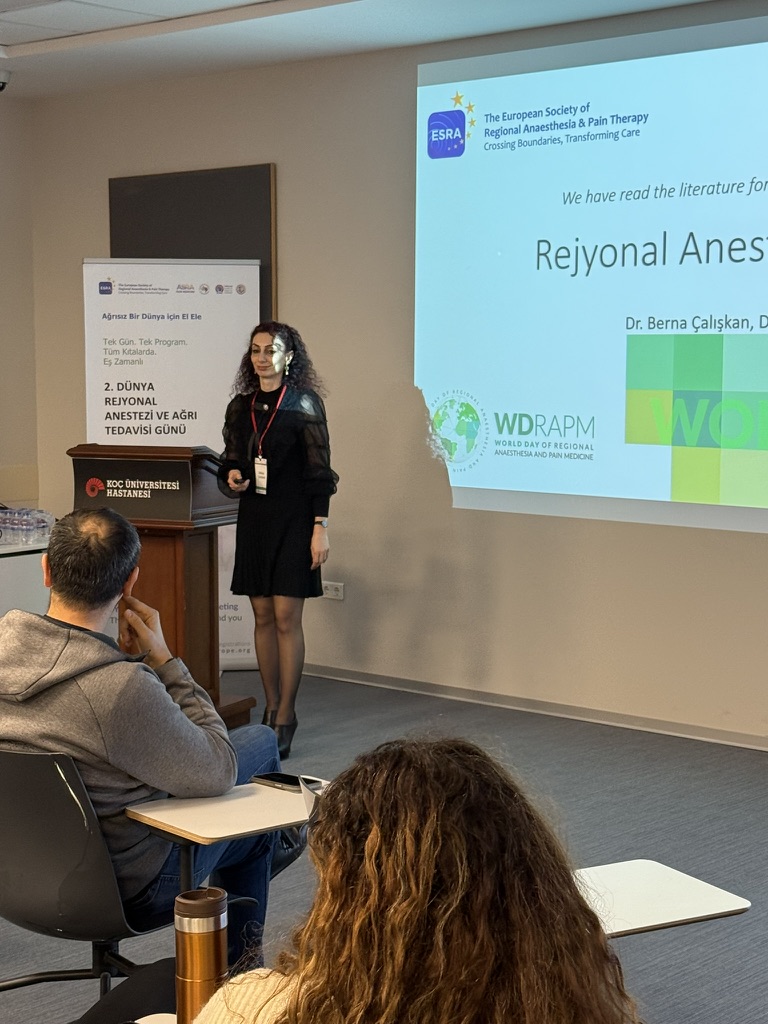 Avrupa Rejyonal Anestezi Derneği (ESRA) öncülüğünde tüm dünyada 150'den fazla şehirde aynı anda gerçekleştirilen 2. Dünya Rejyonal Anestezi gününde “Ağrısız bir Gelecek için El Elen veriyoruz” temalı bilimsel etkinliği gerçekleştirildi. Etkinlik çerçevesinde Derneğimiz İstanbul, Ankara ve Manisa olmak üzere 3 şehirde toplamda 250'den fazla katılımcı ve 70'den fazla eğitimci bir araya geldi.